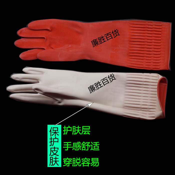 Red extended Kangbao gloves natural latex gloves extended washing dishes laundry housework rubber gloves
