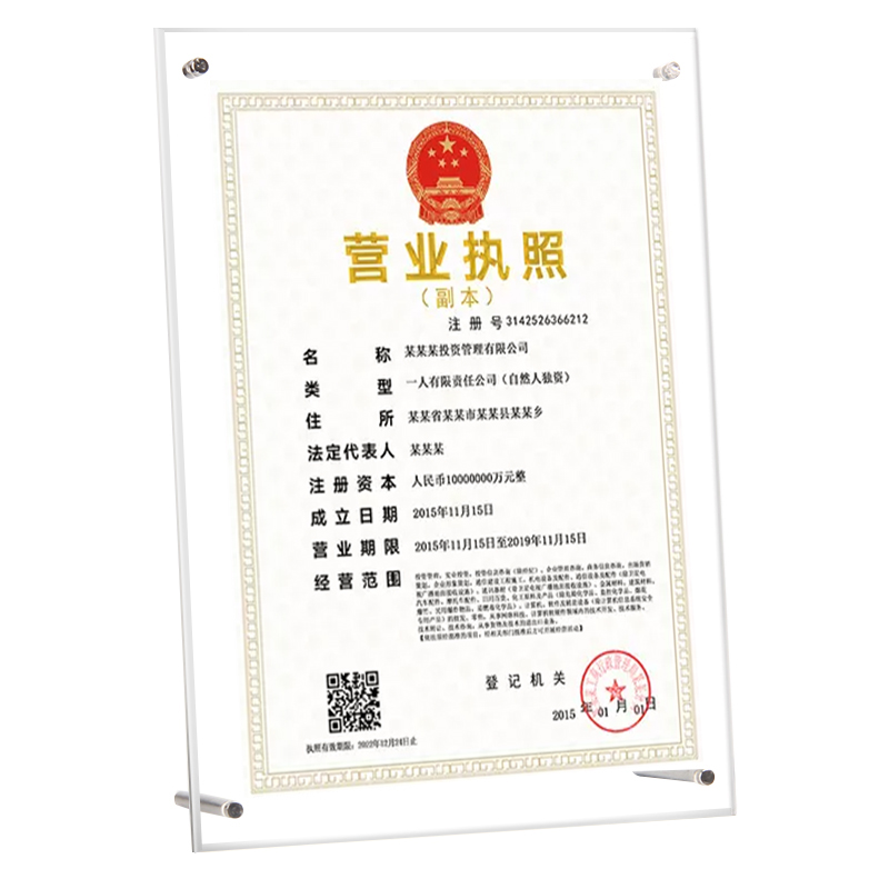 A3 Acrylic display card display stand A4 Taiwan card certificate box Advertising photo table authorization card Transparent card
