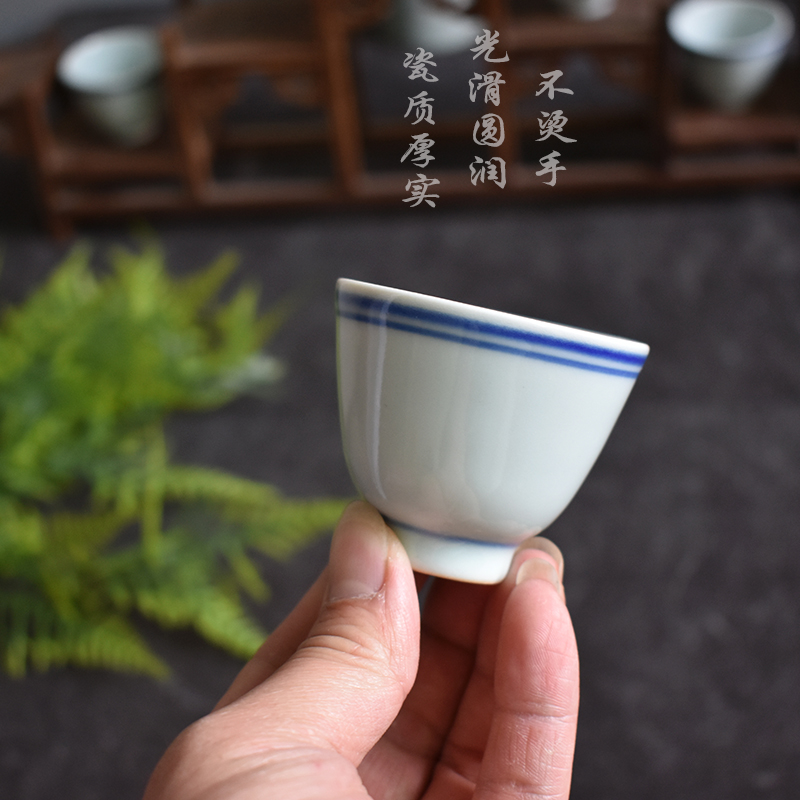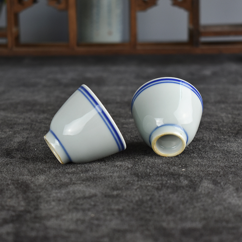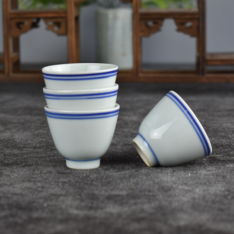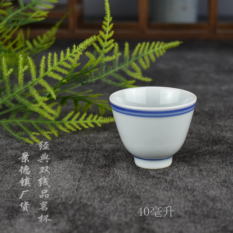 Jingdezhen Cultural Revolution Factory goods porcelain blue and white double line blue edge three-cylinder cup tea cup tea cup antique tea cup double line cup