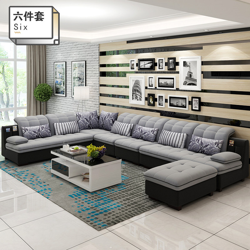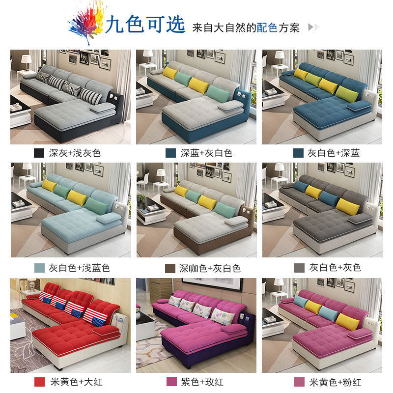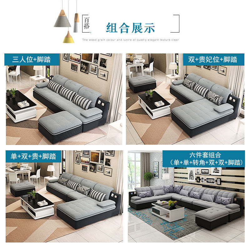 Fabric sofa combination modern minimalist large and small apartment living room whole flannel three-person sofa dismantling and washing latex sofa