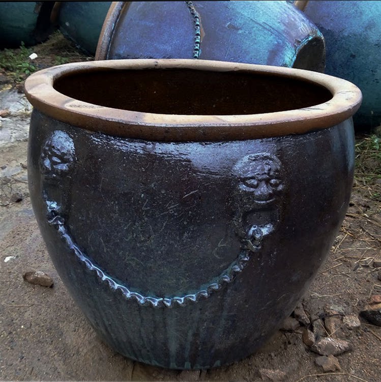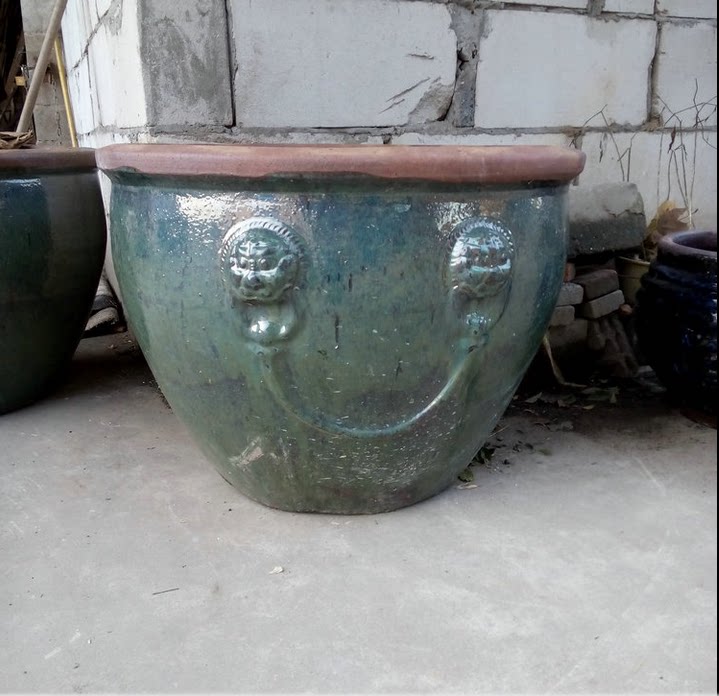 Chinese Classical Lion Head Coarse Pottery Jar Earth Pottery Jar Fish Tank Special large water cylinder Flower Pots Pendulum town Residence Garden Flowers Cultivation-Taobao