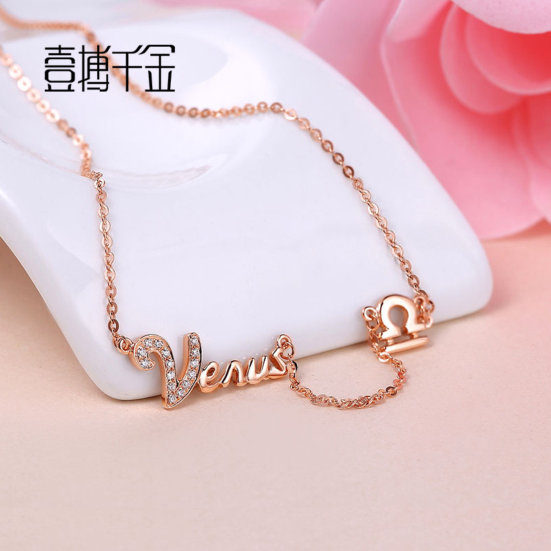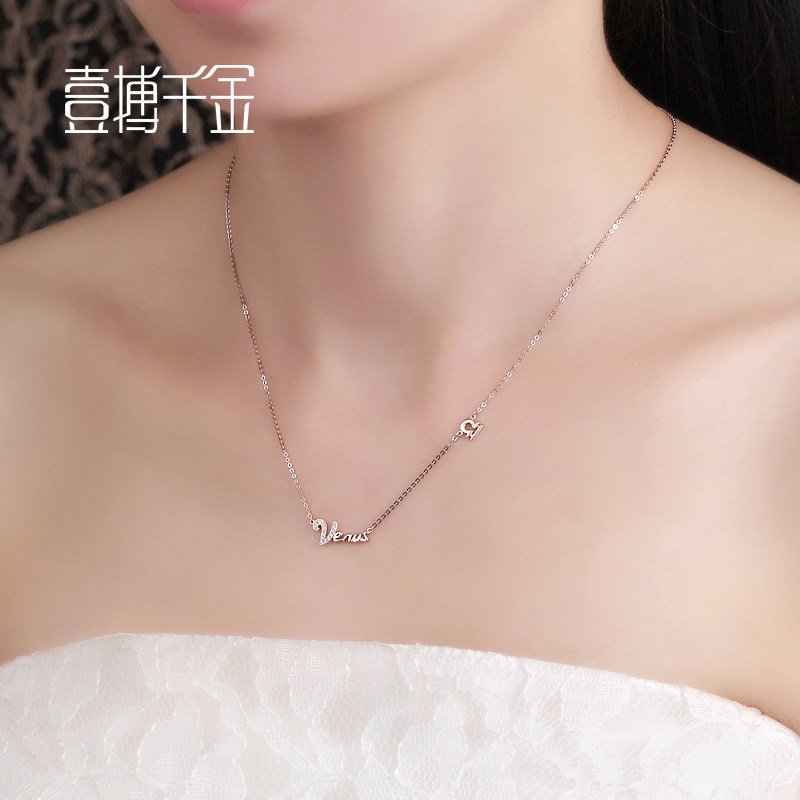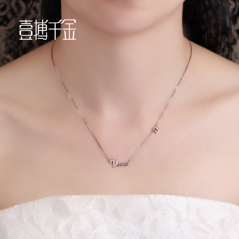 A gold - gold rose 18K gold - horizontal diamond pendant fashion marriage necklace customized