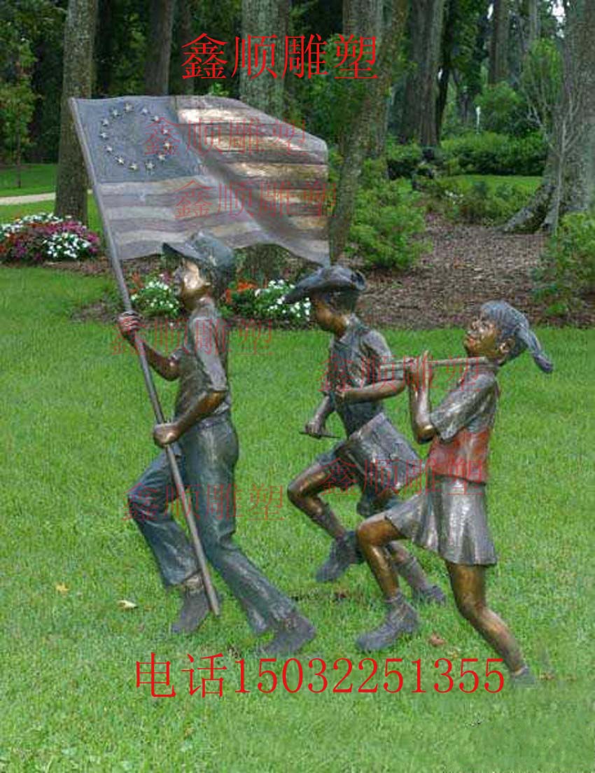 Piazza children blow musical instruments characters blow trumpet children blow trumpets, joyless sculptures children play sculpted small pieces