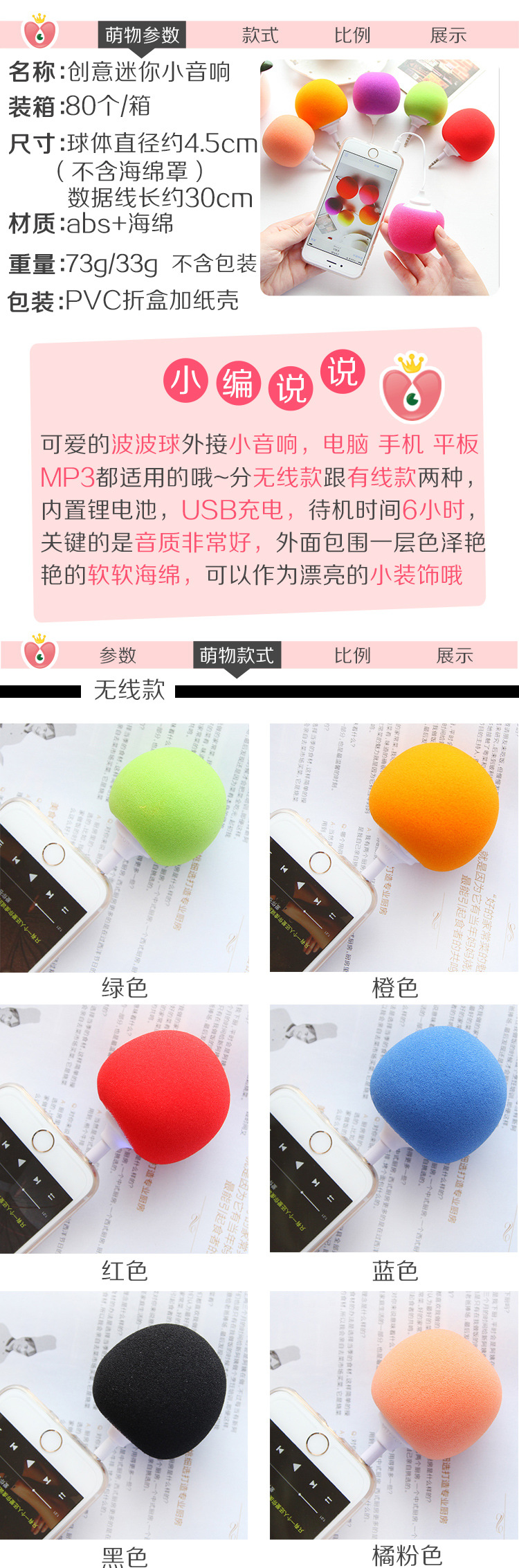 Wireless Small Speaker Outdoor Mini Sponge Apple Balloon Samsung Mobile Computer Tablet Universal Small Speaker