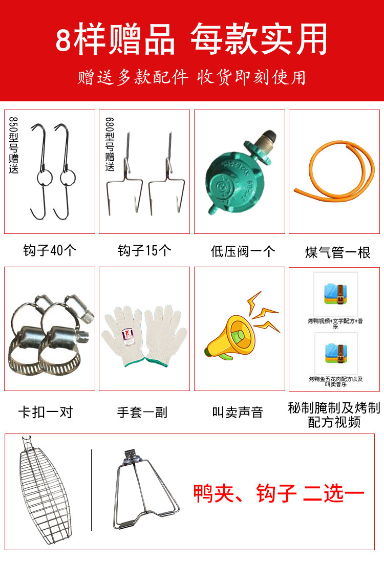 850 type carbon gas dual-purpose model 850 type all gas (vertical type furnace head) 850 type electric carbon type 850 type full electric heating 380V500 yuan deposit 680 type small liquefied gas roast duck furnace 680 type small electric heating 220V