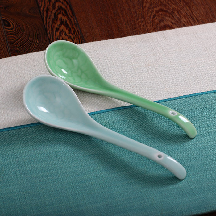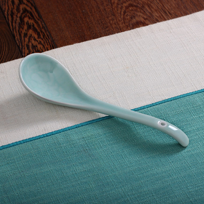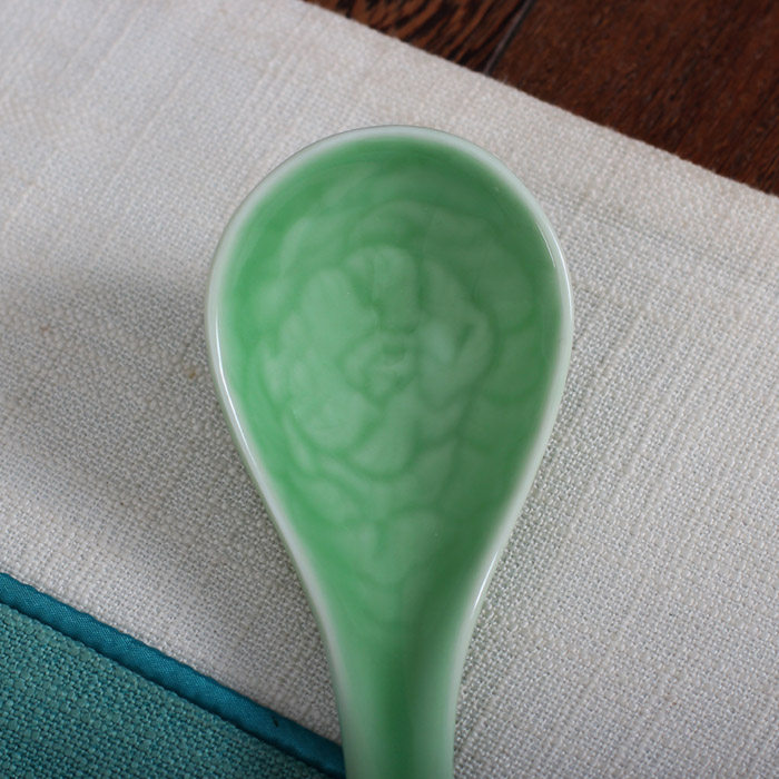 Chinese-style celadon spoon peony large soup pot spoon long handle spoon rice spoon porridge spoon large spoon household spoon