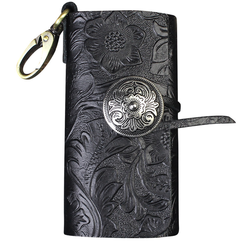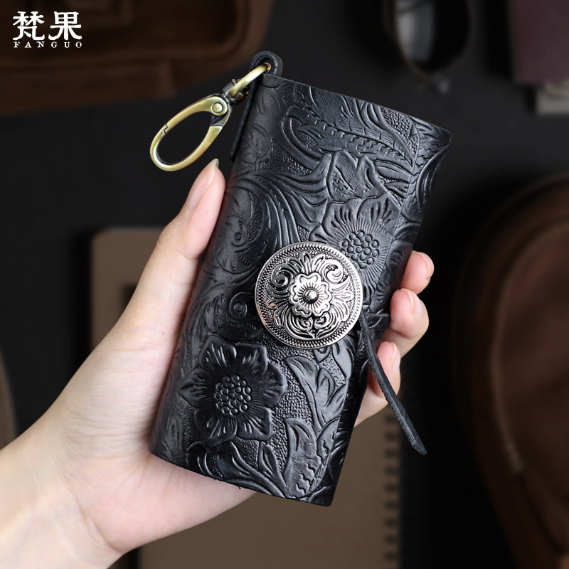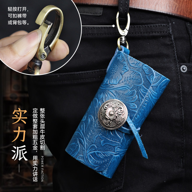 Handmade genuine leather key bag male and female head layer cow leather car key bag large capacity retro waist hanging key buckle lettering