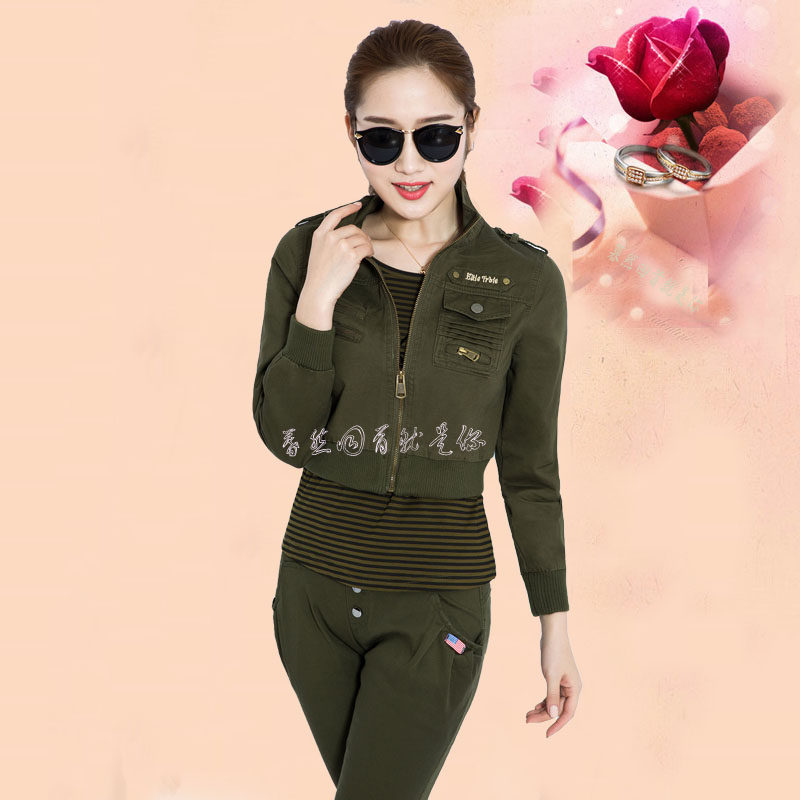 Spring and autumn jacket Women's camouflage uniform Military suit Army green two-piece suit Sailor dance suit Military jacket jacket