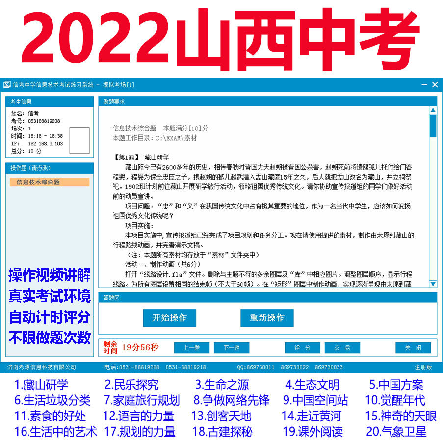 2022 Shanxi Secondary School Entrance Examination Information Technology Examination Practice Video Simulation Review 20 True Question Scoring System Software