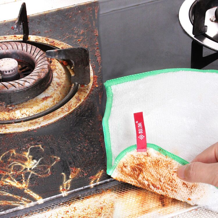 Bright polyester bamboo fiber non-oil dishwashing towel does not lose hair Double thickened absorbent cleaning cloth Kitchen rag dishwashing cloth