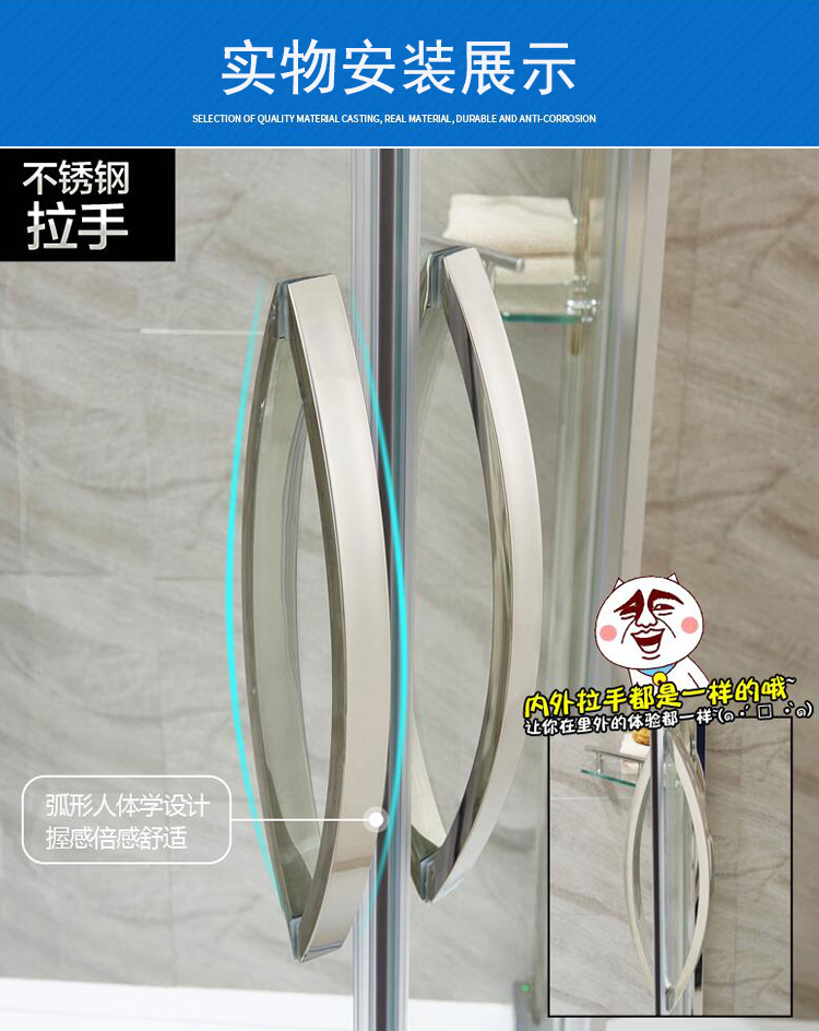 Thickened square tube stainless steel curved shower room paired handle shop office modern minimalist glass door handle