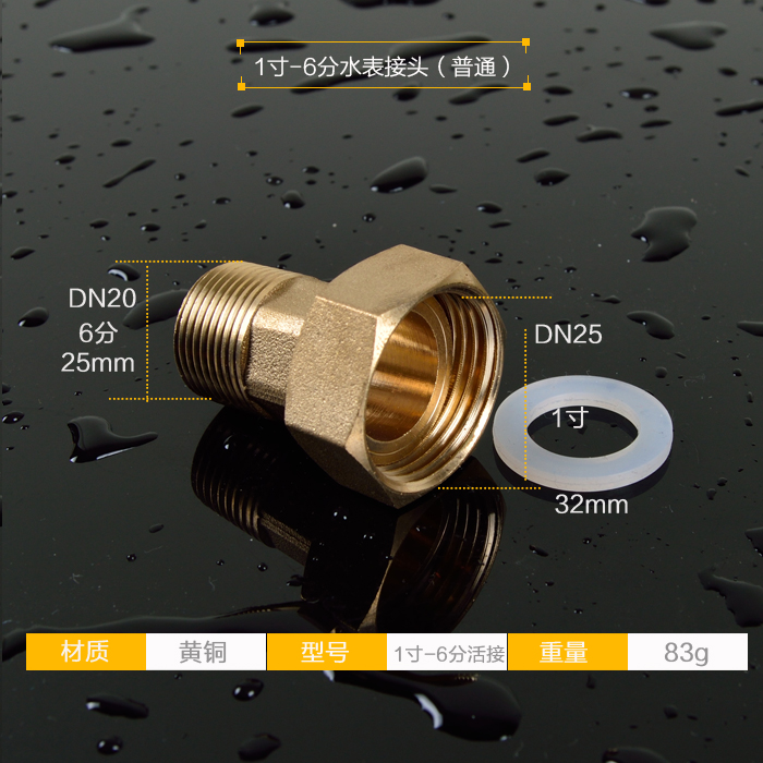 Live 6 points 4 All bronze Water meters Activity Joint 1 inch to turn 6 Sub-internal and internal silk copper live direct water pipe copper activity joint