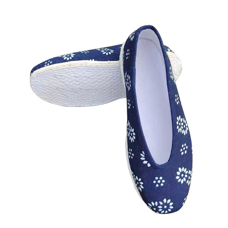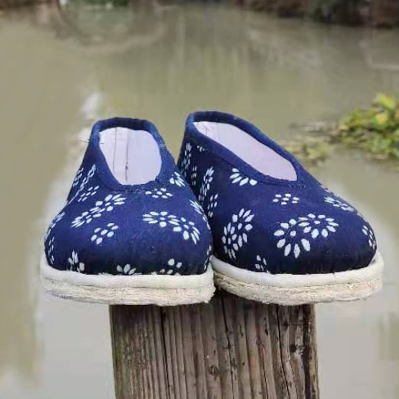 Wuzhen triple crown blue calico lasagna cloth shoes round mouth retro health shoes traditional handmade shoes can be customized