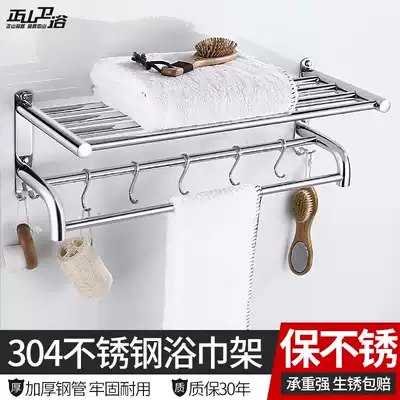 Punch-free towel rack Stainless steel 304 bath towel rack Powder room rack Wall-mounted bathroom pendant rack toilet