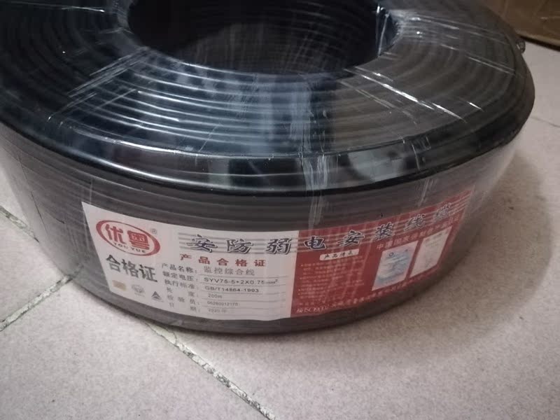 Excellent Guangdong monitoring integrated line SYV75-5 2x0 75mm video power integrated line 170 meters roll