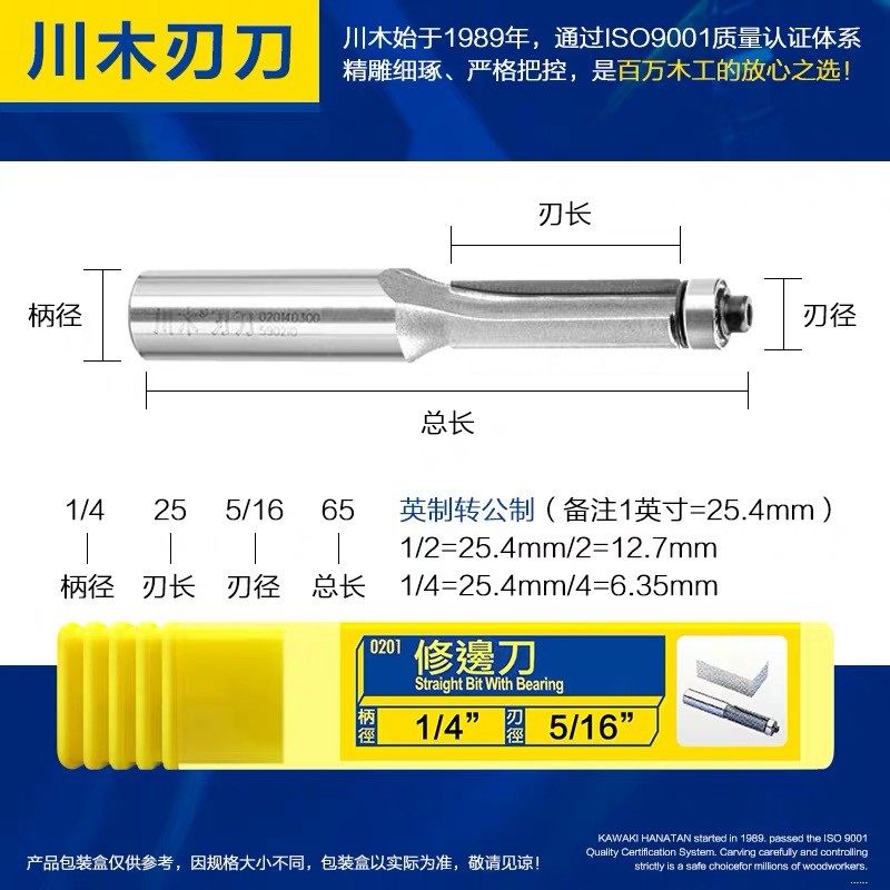 Kawasaki 0201 repair edge knife lengthened blade knife wood milling cutter with bearing double-edge electric wood milling cutter head engraving machine cutter-Taobao