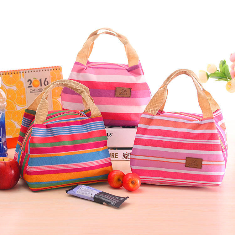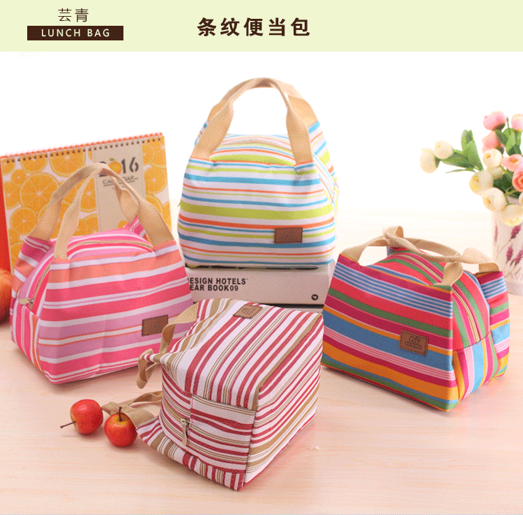 Korean version cute and cold insulation bag Picnic Bag Striped Lunch Bag with Lace Lunch Bag
