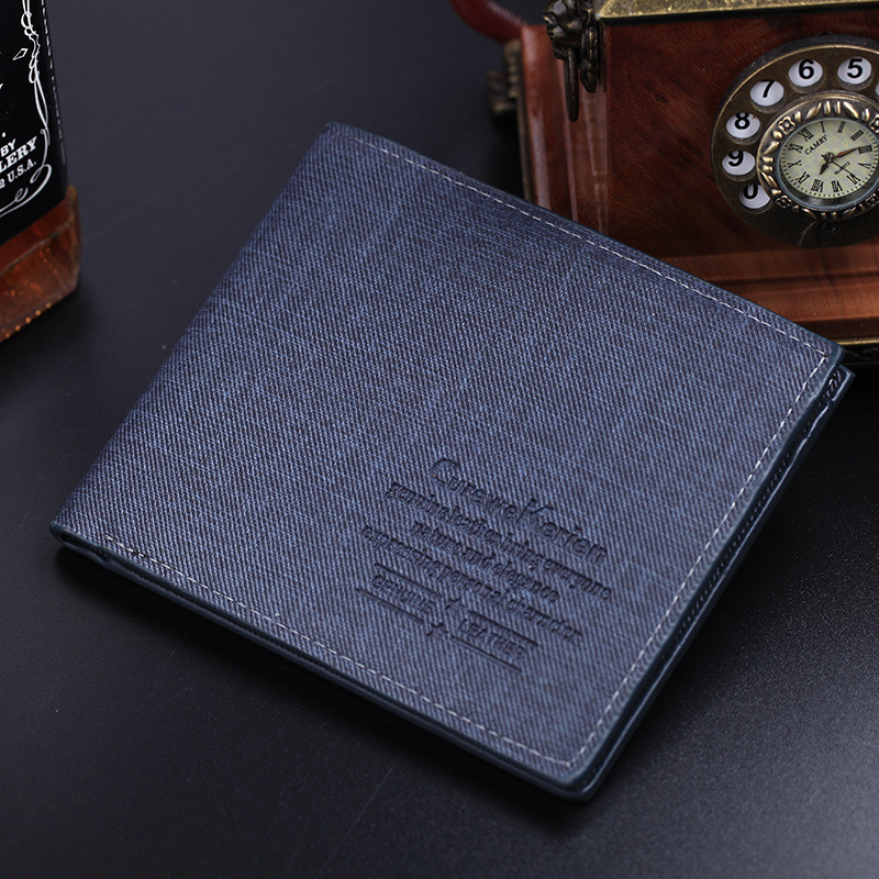 Men's wallet short denim canvas pattern horizontal youth Korean version student wallet ultra-thin Japanese and Korean personality wallet tide