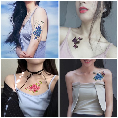 Tattoo sticker waterproof female persistent Korean sexy cute emulated chest tattooed florin arm body colored drawing Rose-Taobao