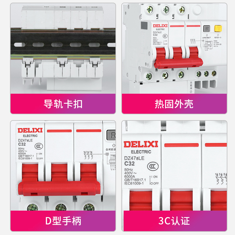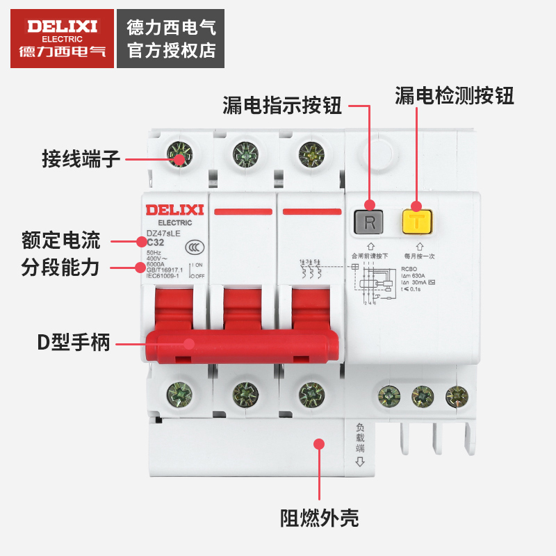 De Lixi 3P earth leakage protector DZ47sLE air switch with leakage protection 32a breaker home 63 empty opening 40