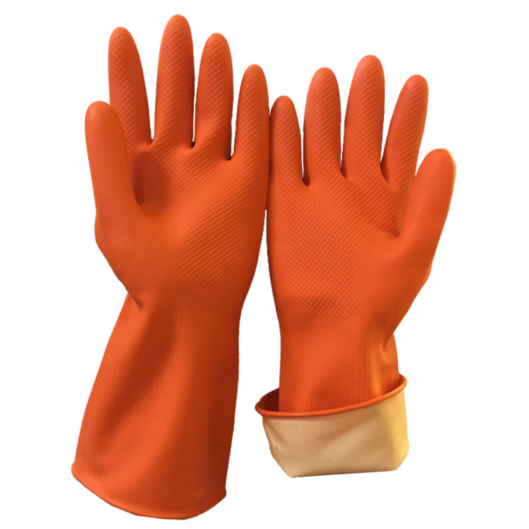 Orange palm pattern non-slip waterproof latex thickened gloves wholesale dishwashing laundry acid-base protection housework gloves