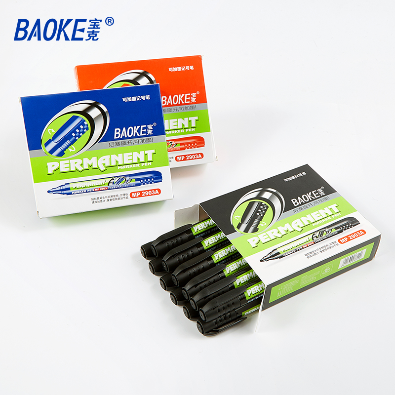 12pcs Poco MP2903A can add ink marker pen Black big head marker pen Oily logistics pen marker pen thick hook line pen Quick-drying not easy to fade Check-in pen poster pen Waterproof drawing line