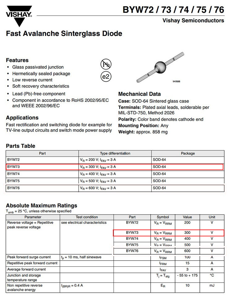 The Jedi brand new Deuterwind VISHAY TFK GLASS PASSIVATION RECTIFICATION DIODE BYW74 3A 400V