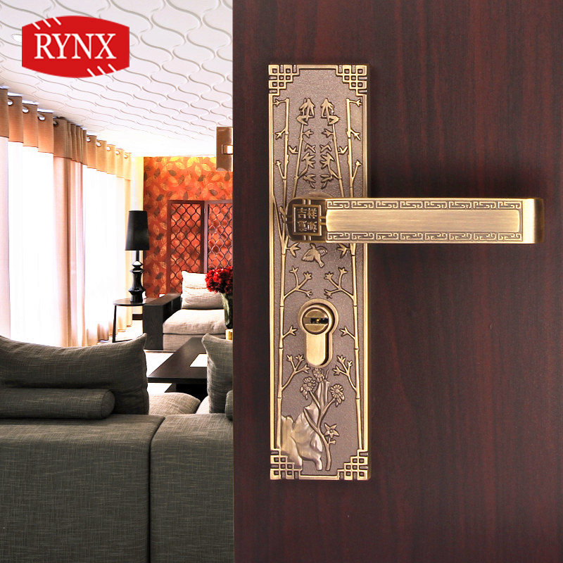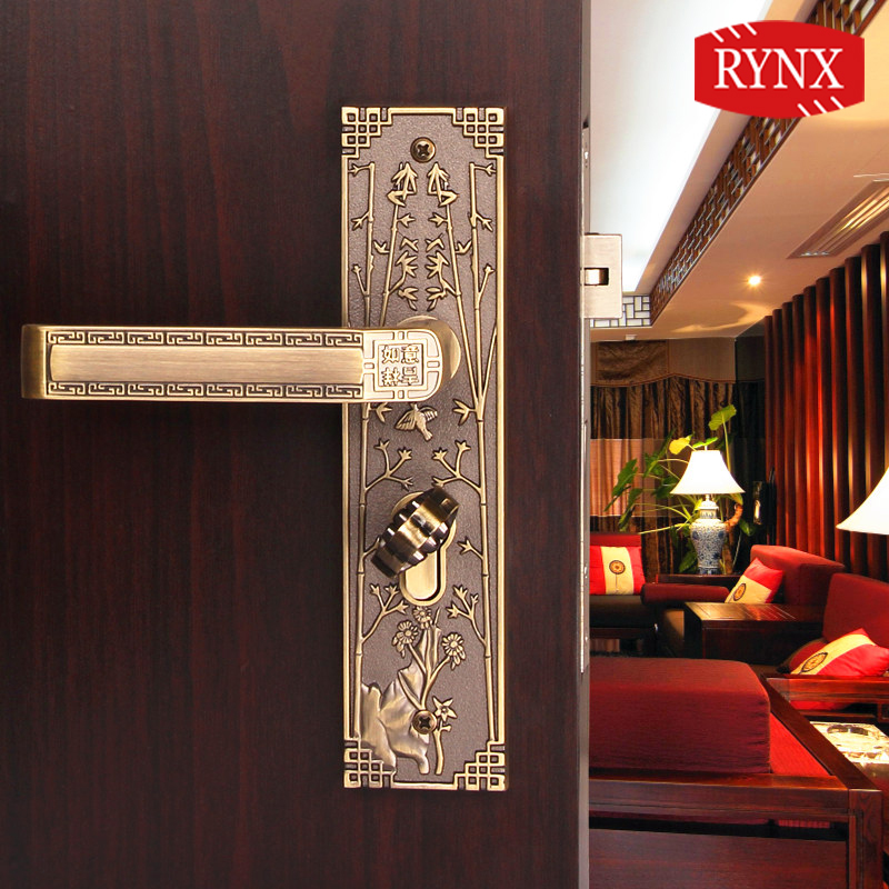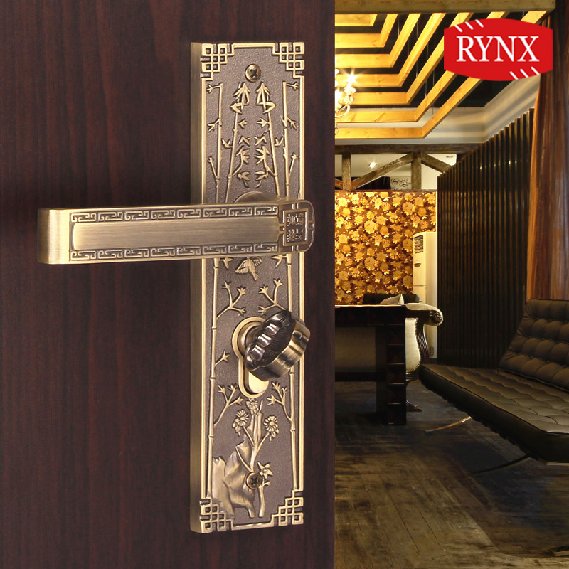 (RYNX Ling Shi)New Chinese wooden door lock Indoor door lock handle panel hand lock Bedroom door lock
