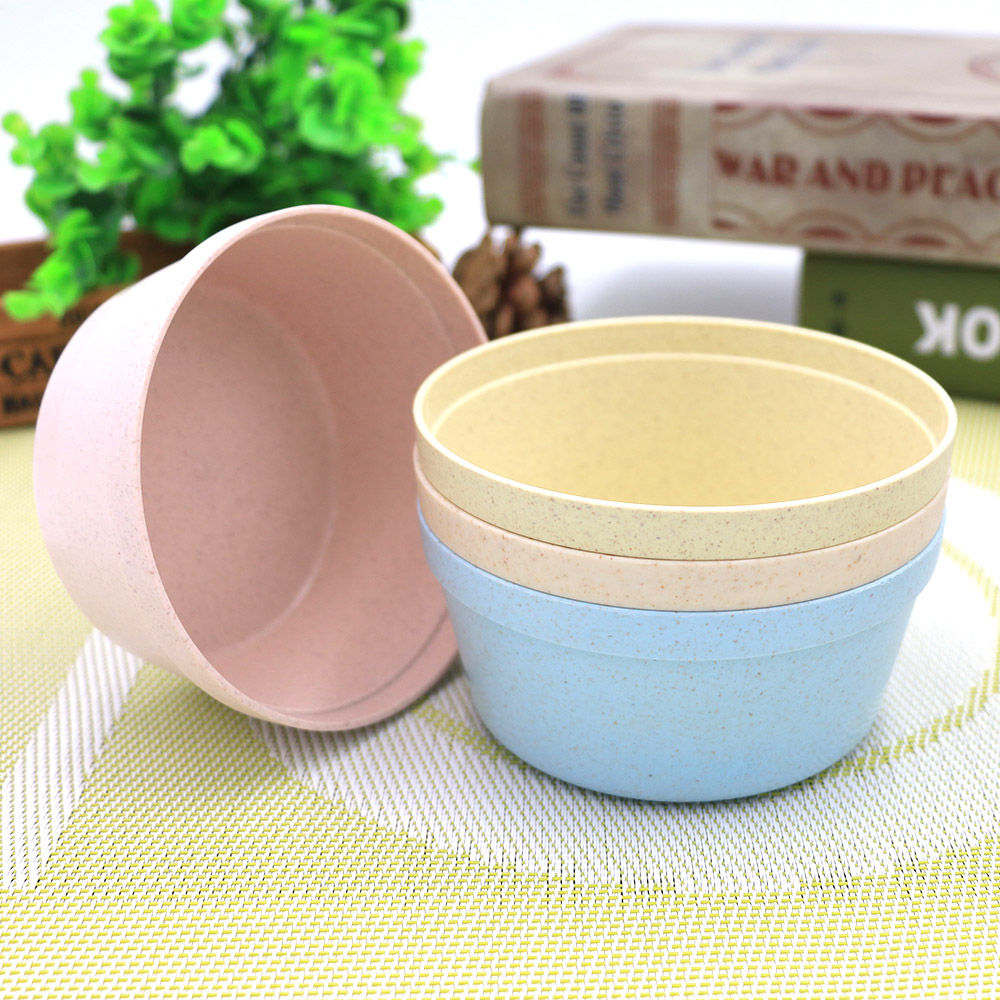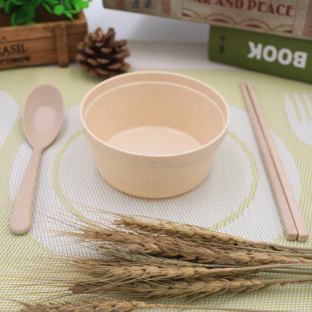 Wheat fiber creative household Western-style straw children's rice soup bowl Travel portable instant noodles rice bowl tableware set