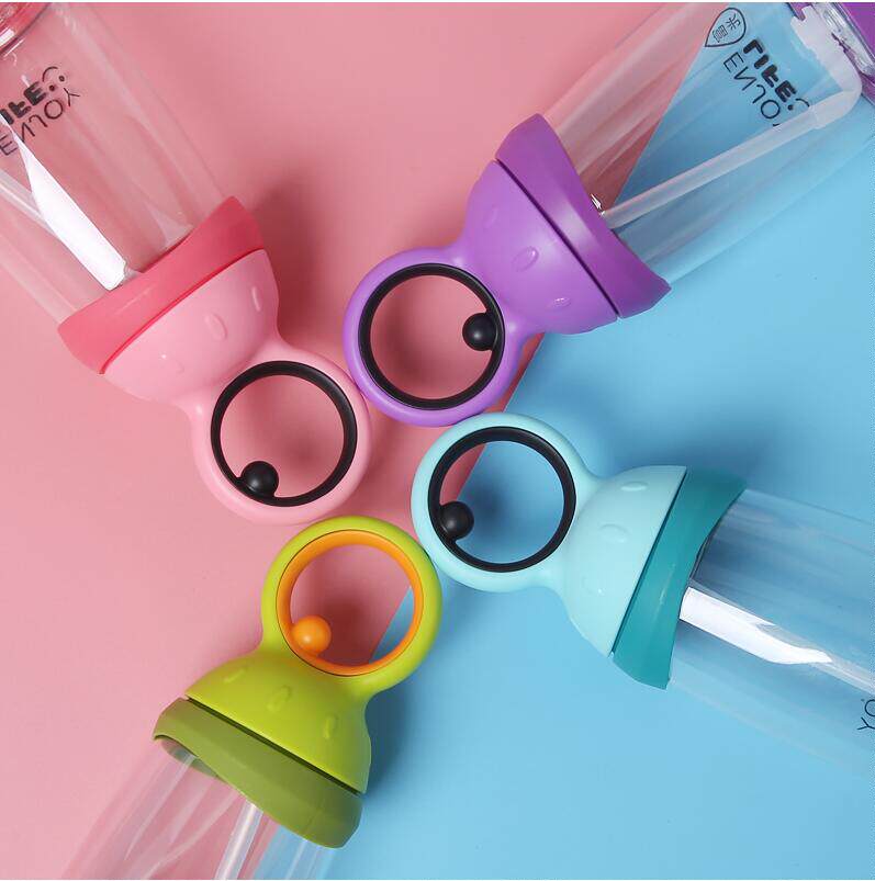 Rich Light Child Straw Plastic Cup Big Eyelid Cute Anti-Fall Baby School Drinking Cup Safety Space Cup 260ML