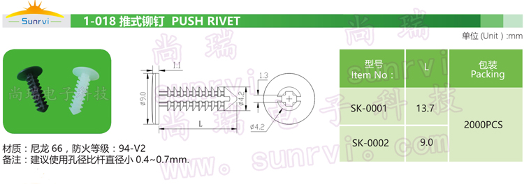SK-0001 Small tree rivets small holes fitted with fixed reversal rivets 4 2MM bar diameter plastic nails