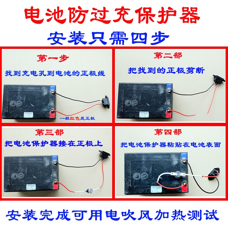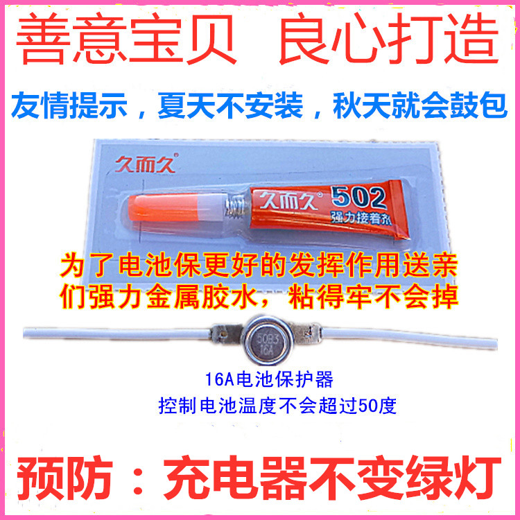 Electric vehicle battery charging protector overcharge automatic power off to prevent heating bulge timer thermostat