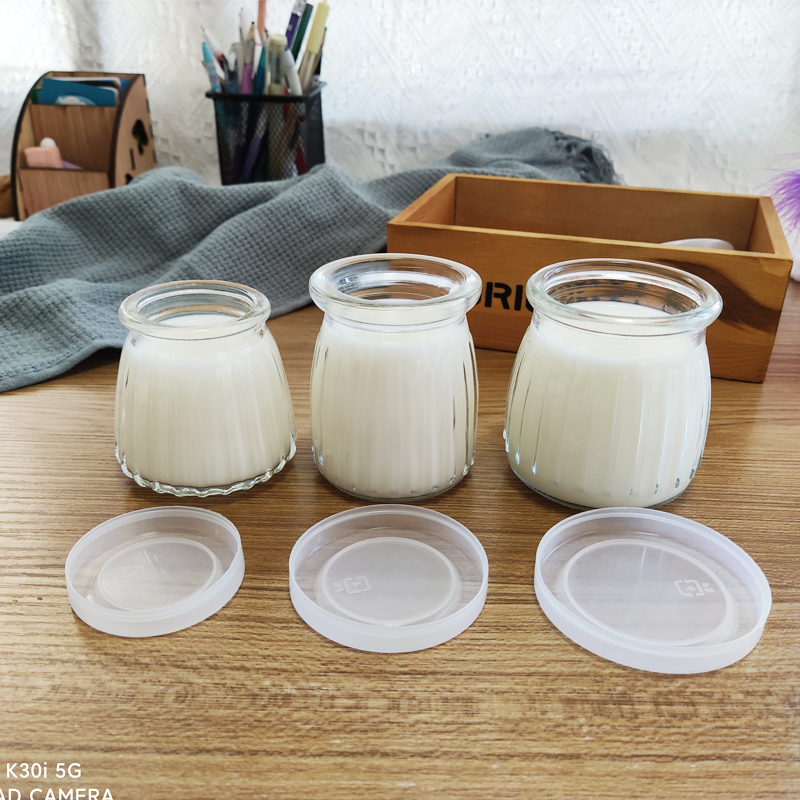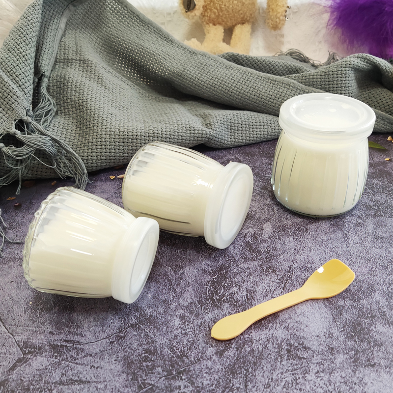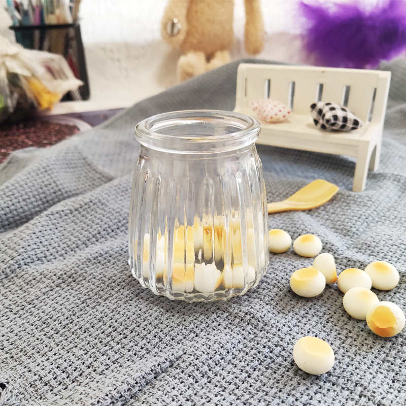 New 100ml 150ml 200ml small pudding bottle Yogurt bottle Vertical striped glass bottle Pudding cup with lid Bird's nest