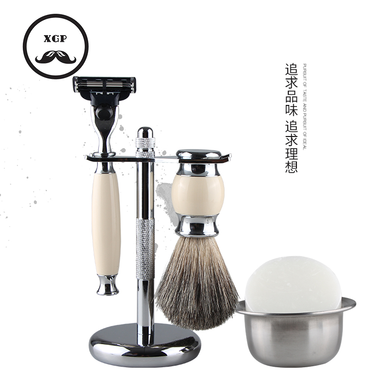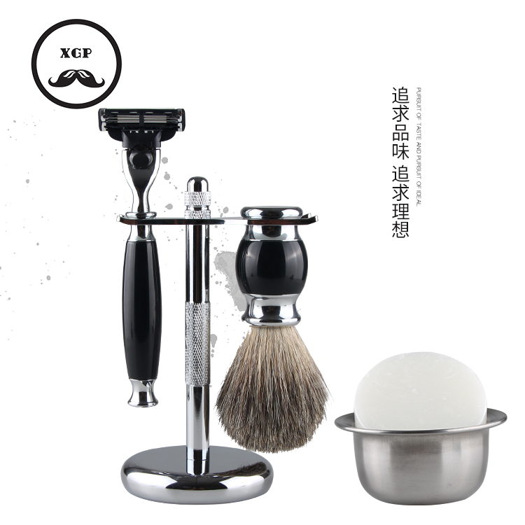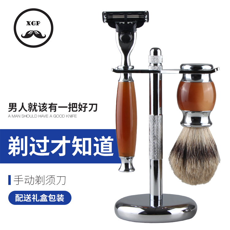 German quality imported high-end men's razor with brush holder set retro manual razor imitation wood grain