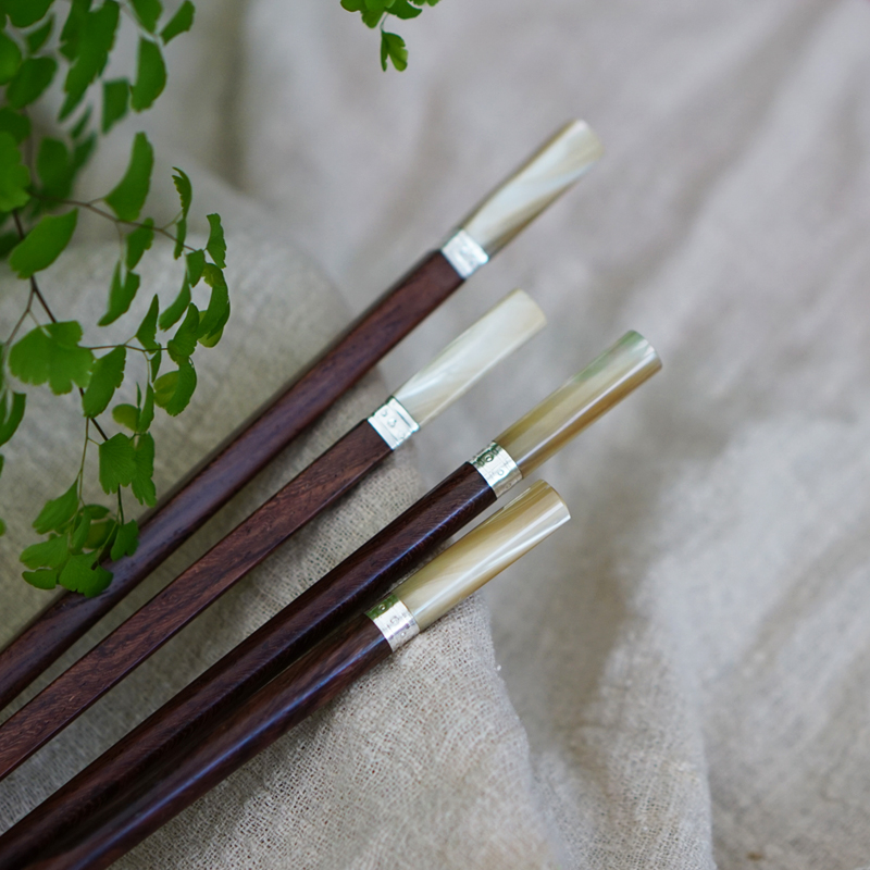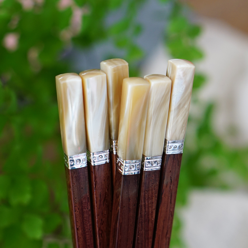 Xin Dianjia Southeast Asia imported shell inlaid silver solid wood chopsticks acid branch wood Japanese hotel model room soft decoration