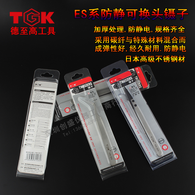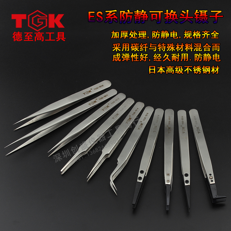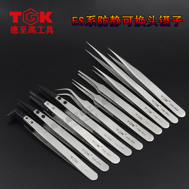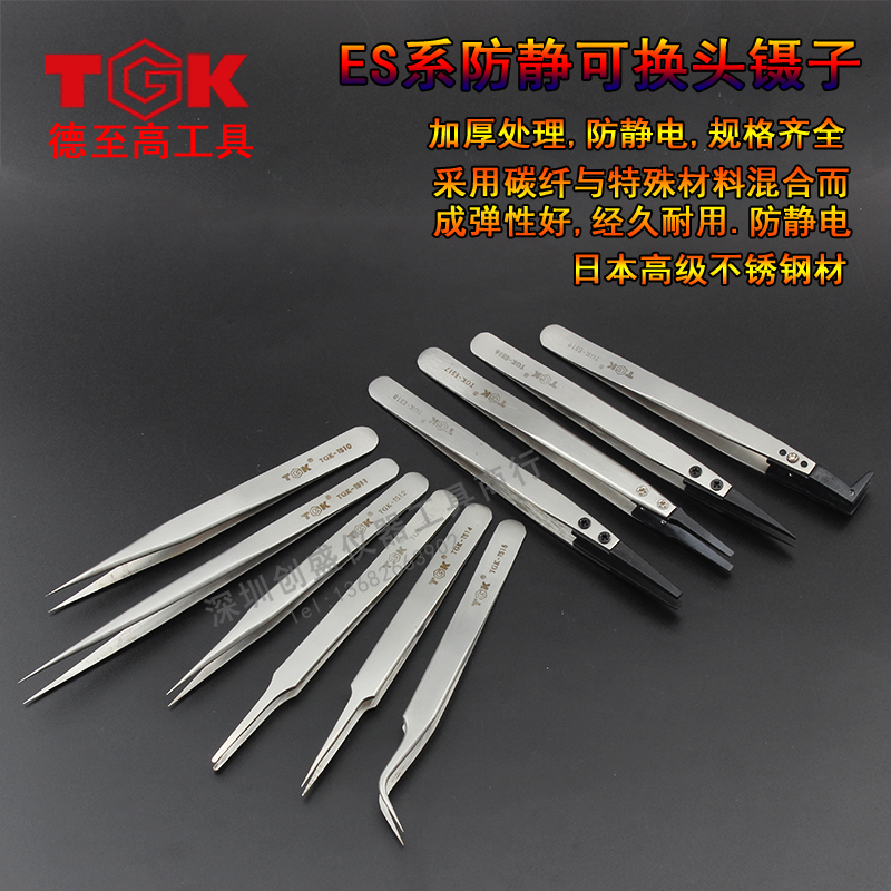 De Gao TGK-ES16 ES17 ES18 ES19 Anti-static replaceable head tweezers Carbon fiber removable tweezers