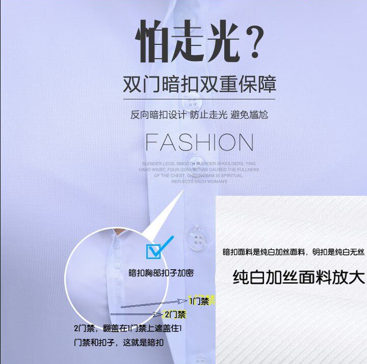 Dark buckle (short sleeve partial) white dark buckle (short sleeve partial) light blue dark buckle (long sleeve partial small) white concealed buckle (long sleeve partial small) light blue