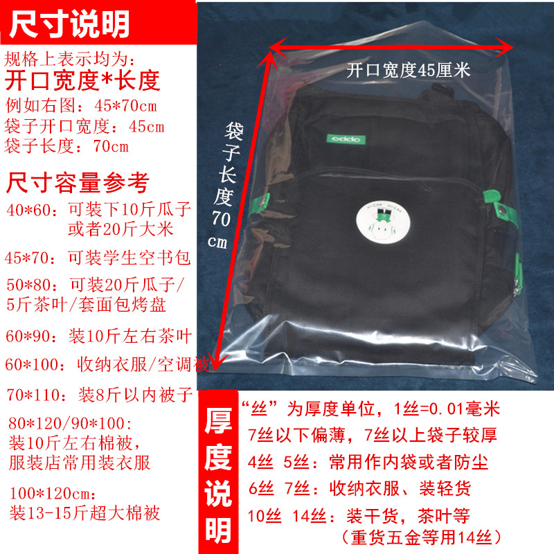 Large Transparent Flat Pocket Storage Packaging Dustproof Plastic Bag Film Plastic Bag Food Packaging Inner Film Bag Customization