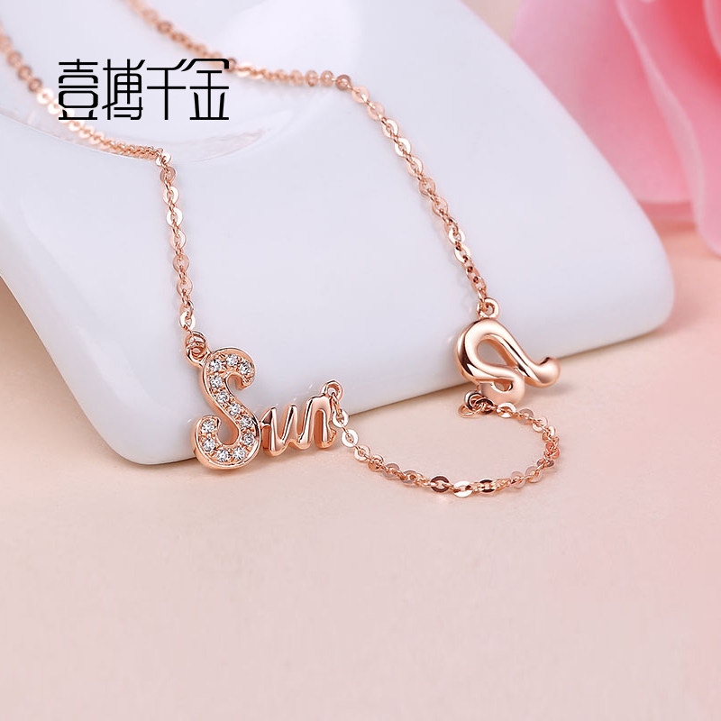 (Custom) The rose 18K gold group inlaid with 5 points (with chain)