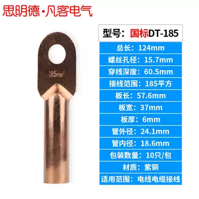 Fanke national standard DT-185 square copper nose wire nose terminal copper wire lug oil plugging connector A grade