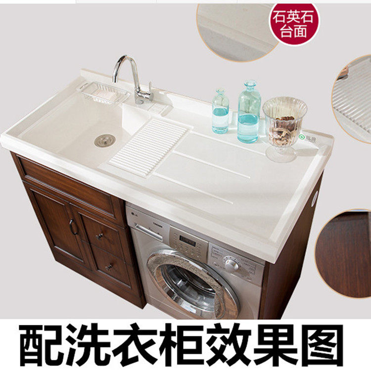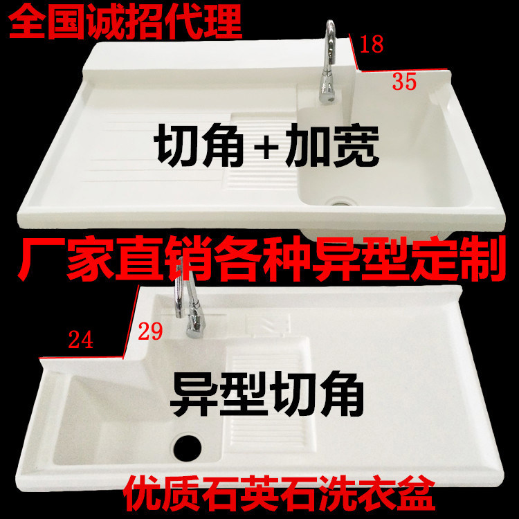 Custom cut-angle Quartz stone washing basin pool Balcony laundry tank widened and extended washing machine counter with washboard
