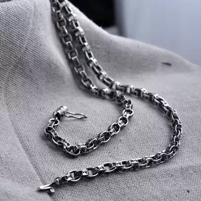 Heng Yinxuan s925 sterling silver necklace Thai silver men's pendant necklace oval ring Joker women's sweater