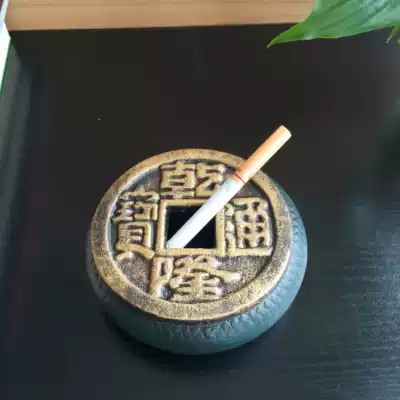 Creative nostalgic all cast iron ashtray personality ashtray with lid office home decoration ancient coin ashtray