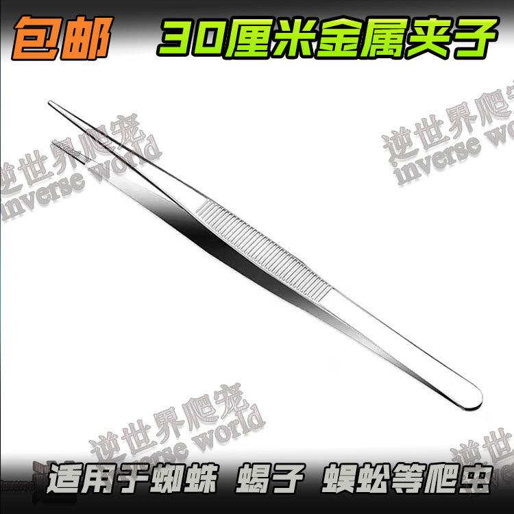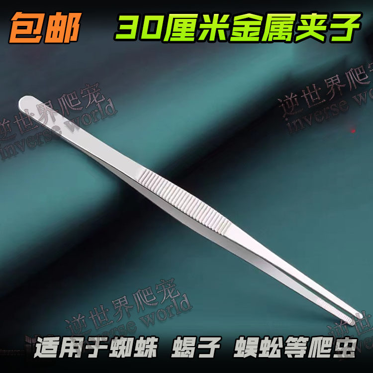 Stainless steel tweezers 30 cm clip non-slip round head crawling pet feeding clip spider scorpion centipede feeding tweezers