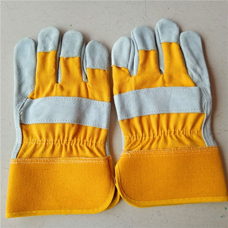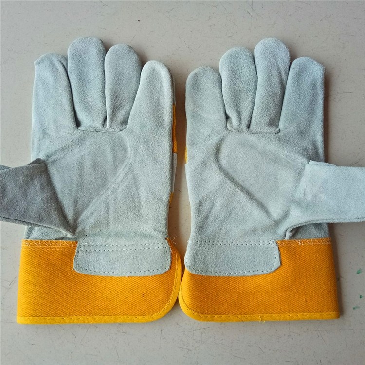 Hot-selling cow two-layer short full leather A-grade yellow cloth two-finger cut-resistant high temperature 300-degree welding work protective gloves labor insurance