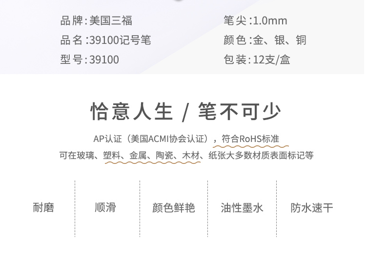American SHARPIE keen silver oily pen Sanfu golden copper marker pen 39100 10mm