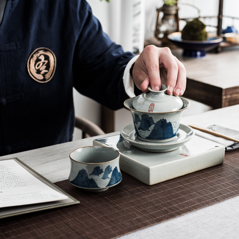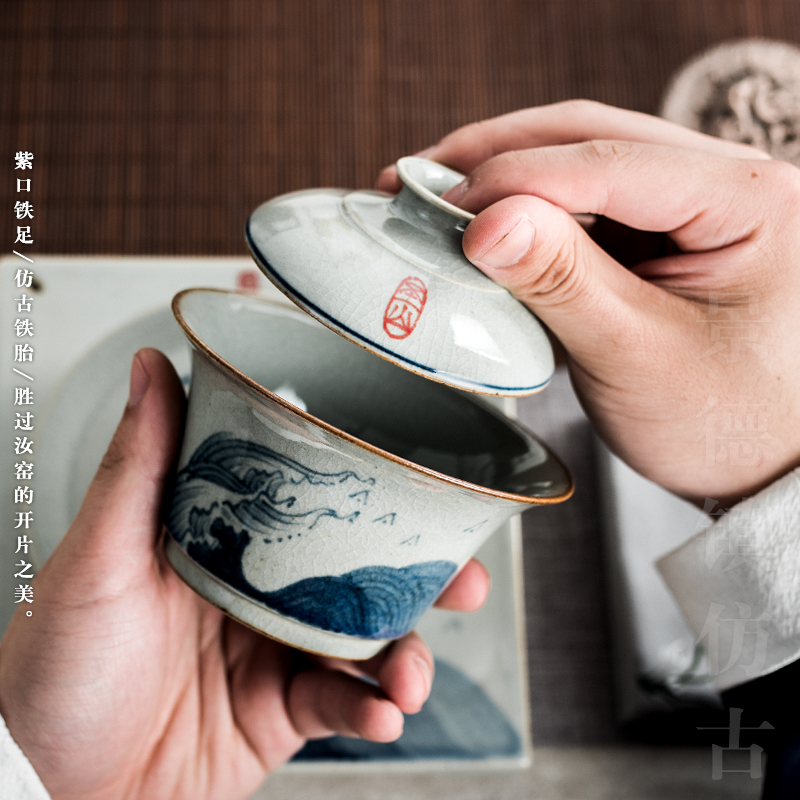 San Mountain Jingde Town hand-painted Chinese antique tea set three-tall cups of large-scale cup