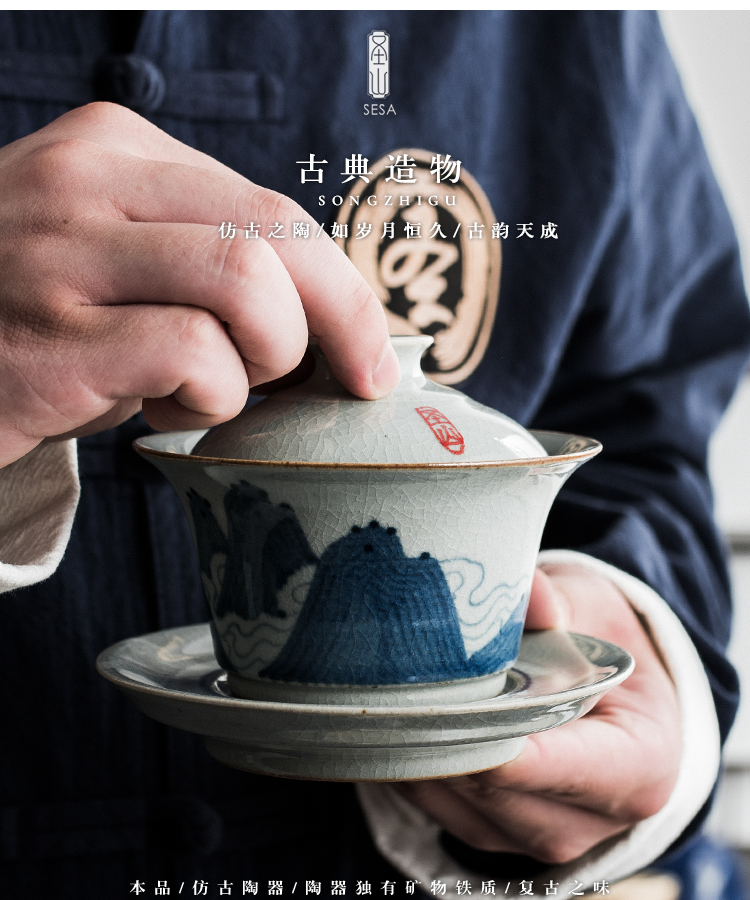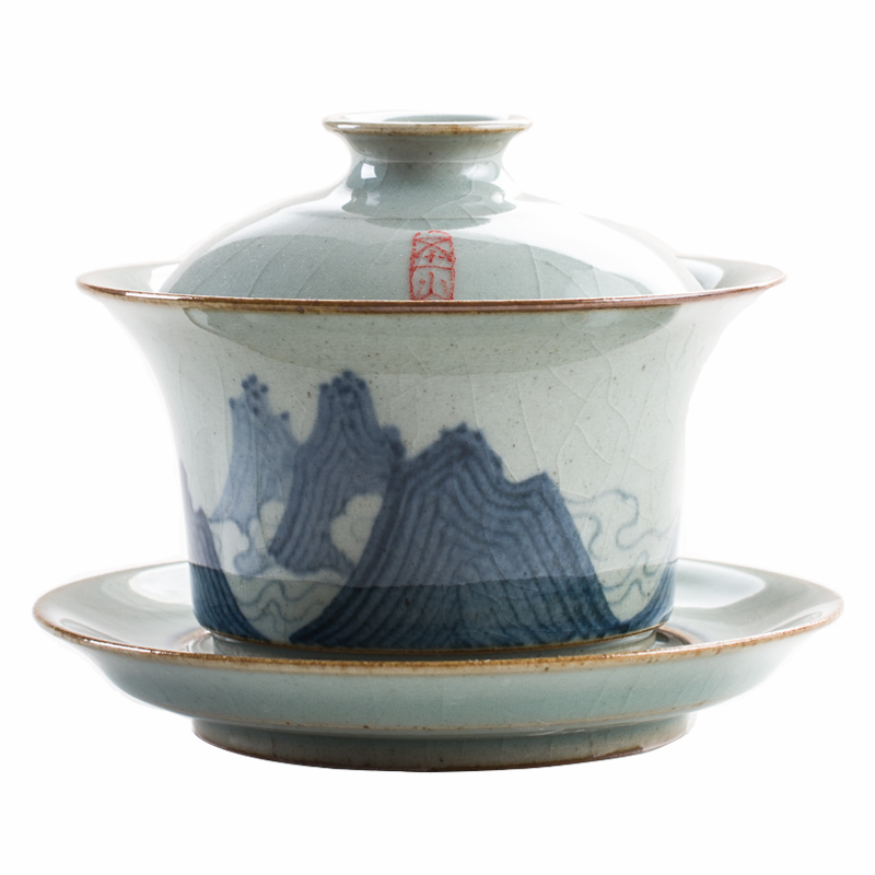 Antique hand-painted blue-painted blue-shaped bowl of antique hand-drawn blue-bowl bowl of blue-cloth upscale bowl (please note)A bowl of high-end two cups (holy mountain style)