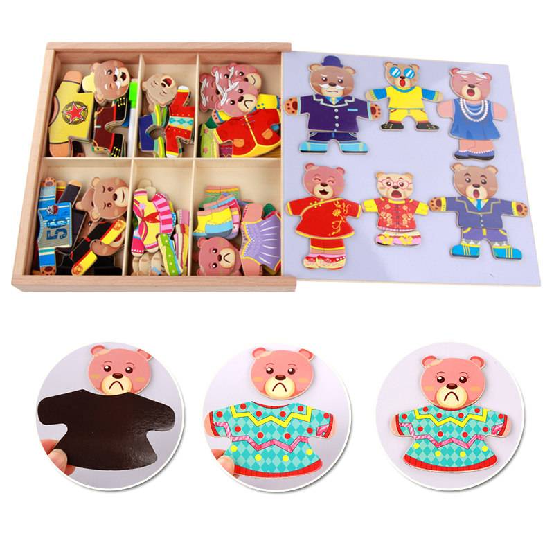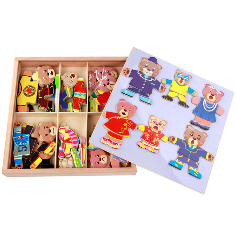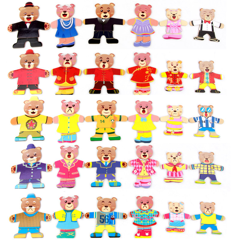 Baby early teaching puzzle toy wooden six bears changing clothes puzzle 1 - 3 - 6 years old Kai - Li Chung's early teaching