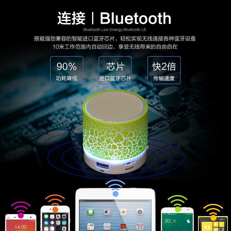 Wireless Bluetooth Speaker Mini-Card Portable Low Sound Cannon Color Light USB On-board Computer Small Sound Speaker
